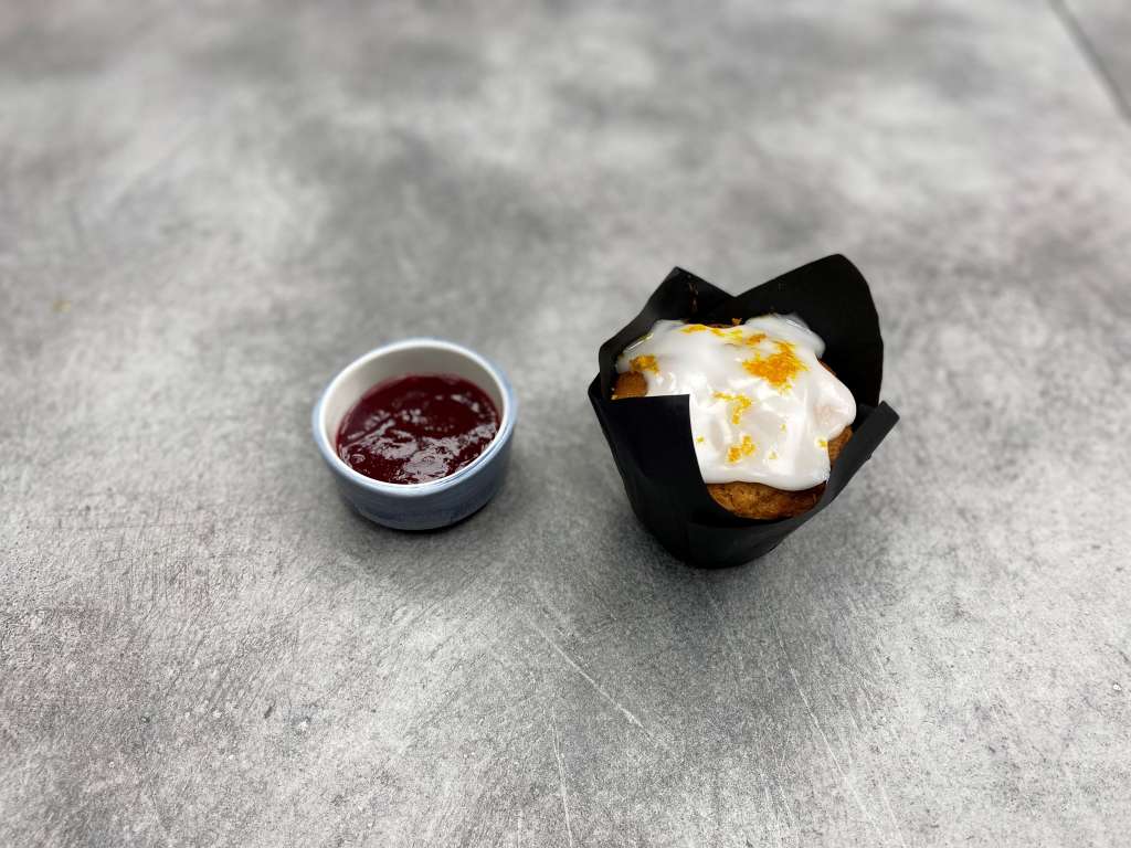 Muffin πιπερόριζας με σάλτσα μελιού με παντζάρι