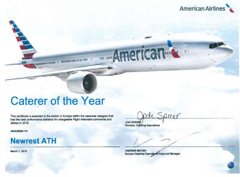 Σημαντική διάκριση της Newrest Αθήνας από την American Airlines